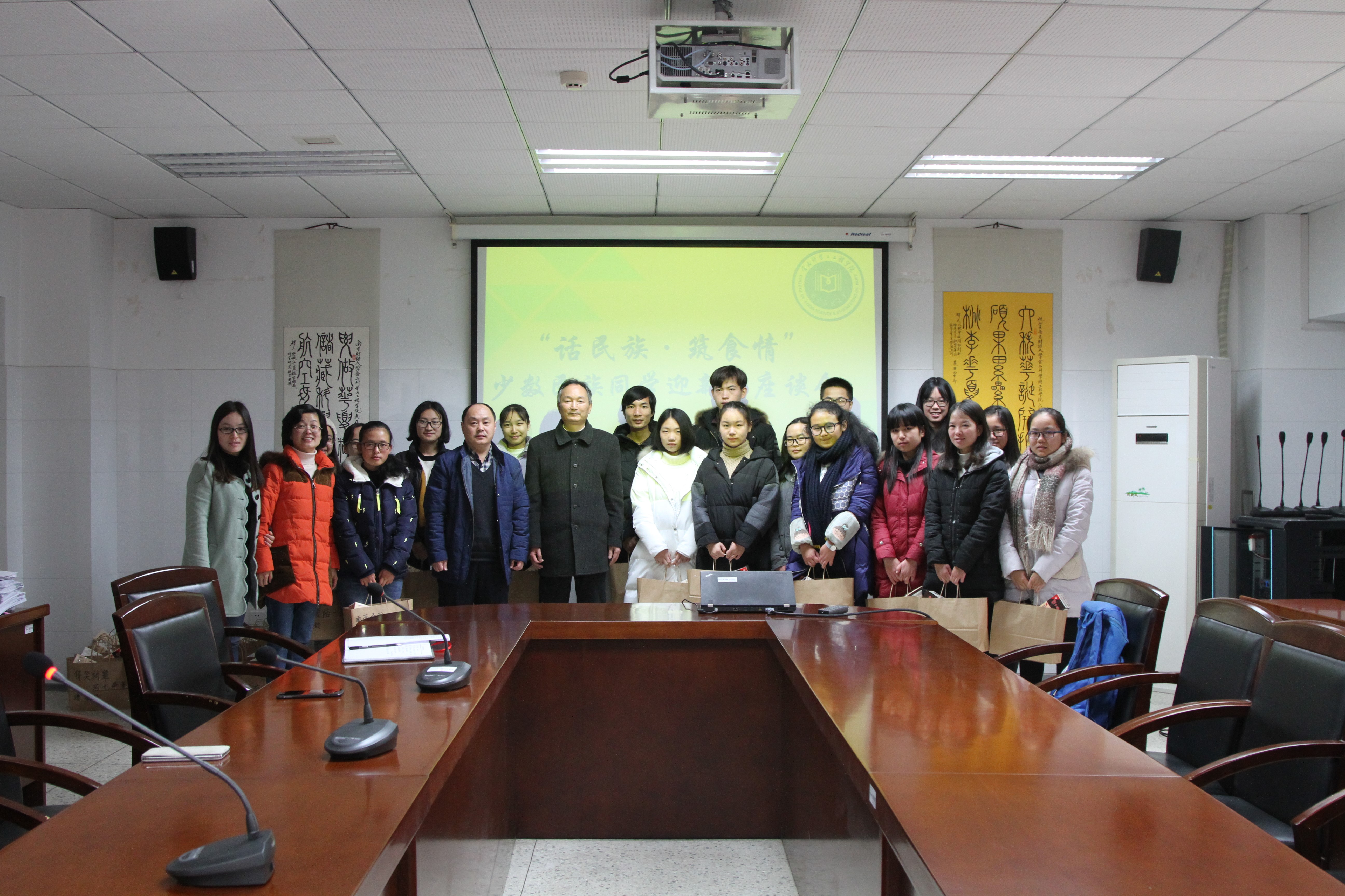 座谈会上,黄辉副书记介绍说,除了汉族学生外,我院共有来自17个民族的46位少数民族学生,是学校少数民族学生较多的学院。学院党委书记吴正浩、院长胡秋辉阐释了学院关心少数民族学生学习、生活的政策,希望同学们相互理解、相互包容,锻炼成长,为将来更好的适应社会奠定基础;学院将继续关心大家,希望同学们在新的一年里学业进步、生活幸福。随后,少数民族同学踊跃发言,纷纷讲述了自己民族的生活习惯、风俗特点,并对学院的关心照顾表示感谢。现场气氛轻松愉悦。