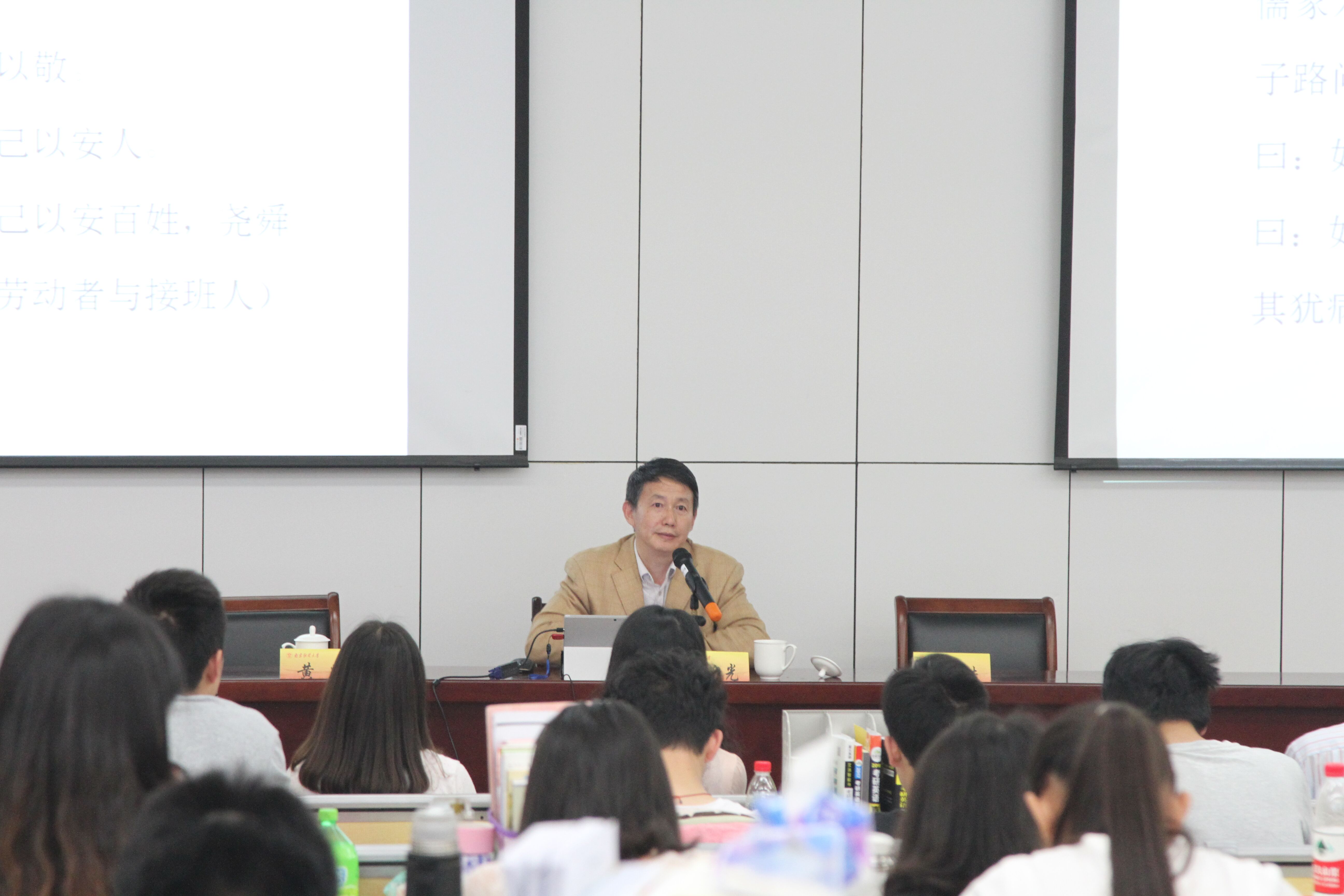 应我院邀请,5月10日下午,南京师范大学马克思主义学院党委书记、博士生导师孙迎光教授在食品科学与工程楼报告厅作了以“儒家文化与人生修养”为题的讲座。讲座由我院党委书记吴正浩主持,党委副书记黄辉、全体辅导员及学院部分同学聆听了讲座。