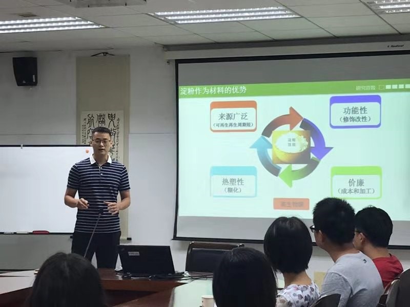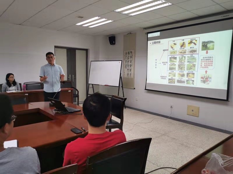 孟令晗博士多层次地与师生们探究了淀粉基全降解材料的性能与环保功能,并基于水分与糊化强度的关系方面研究了淀粉基全降解材料的性能优势,通过淀粉基做成快递的内填物,减少了快递行业中的资源浪费,达到环保的目的,获得大学生自主创新项目金奖。陈二虎讲师从蛋白组学角度出发,与师生们共同探究了“桔小实蝇蛹从白色变为褐色的机理代谢途径”,从“代谢通路、dsRNA沉默技术和桔小实蝇蛹壳相关基因的关系方面的分析,达到对桔小实蝇虫害防治的目的”。沙龙研讨环节,教师们就本期两位讲师的报告内容的问题踊跃发言、广泛交流,并围绕两位博士2020年拟申报的青年基金内容进行深入剖析,提出了建设性的基金申报意见。