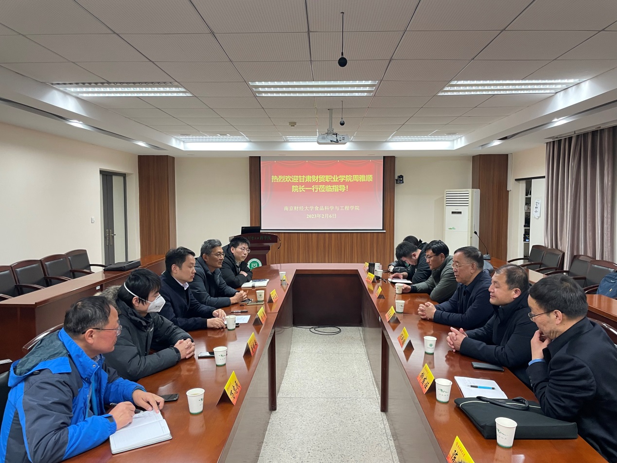2月6日,甘肃财贸职业学院院长周雅顺、副院长何科鹏,南京紫金山研究院院长陈九法、院长助理陈建等一行来我院调研交流。我院党委书记许文彪、院长方勇、副院长丁超,现代粮食流通与安全协同创新中心办公室主任唐培安,以及万忠民副教授等参加座谈会。座谈会由许文彪书记主持。