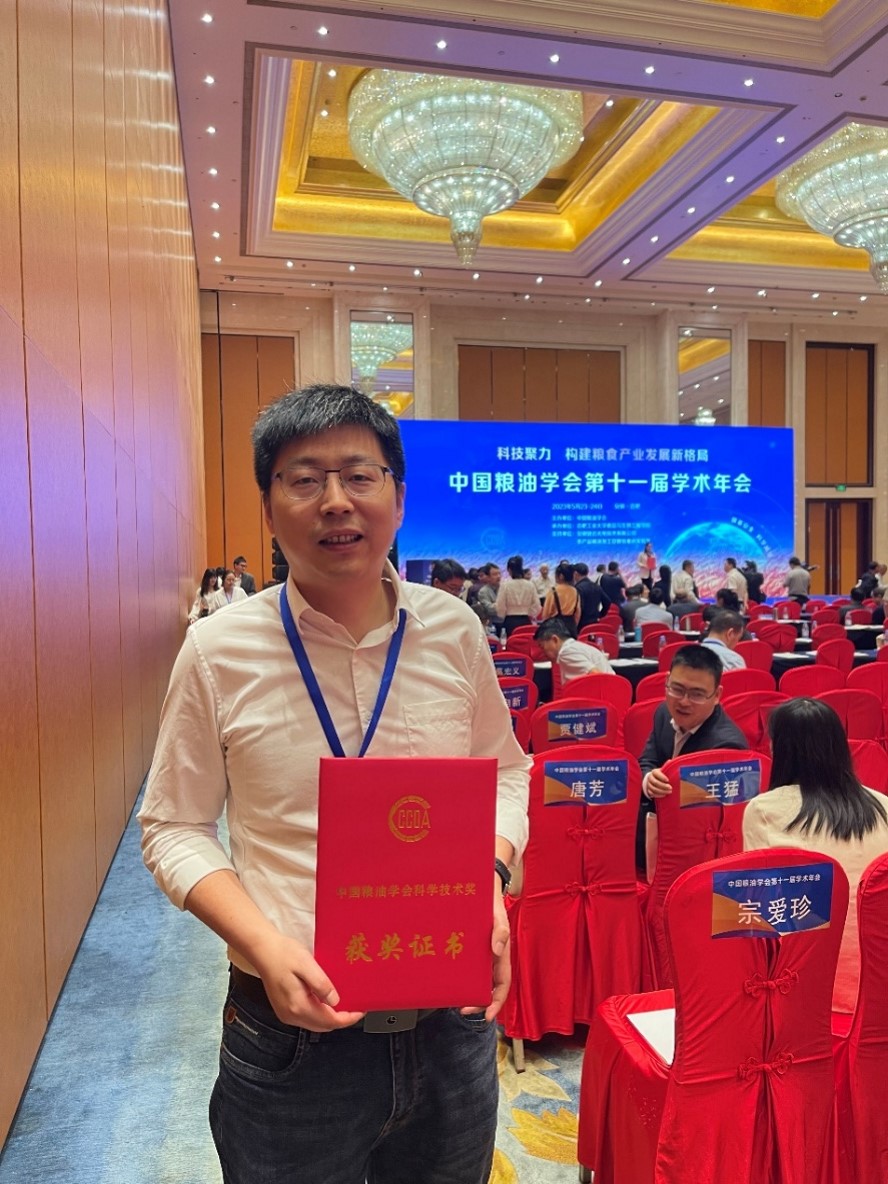 5月23日,中国粮油学会在安徽合肥召开第十一届学术年会,大会聚焦“科技聚力 构建粮食产业发展新格局”主题,全国各地众多粮油科技工作者共襄盛会。 在中国粮油学会第十一届学术年会开幕式颁奖仪式上,我院丁超副教授团队完成的“稻谷产后质量智能监管与虚拟仿真关键技术研发及应用”荣获了2022年度中国粮油学会科学技术二等奖。
