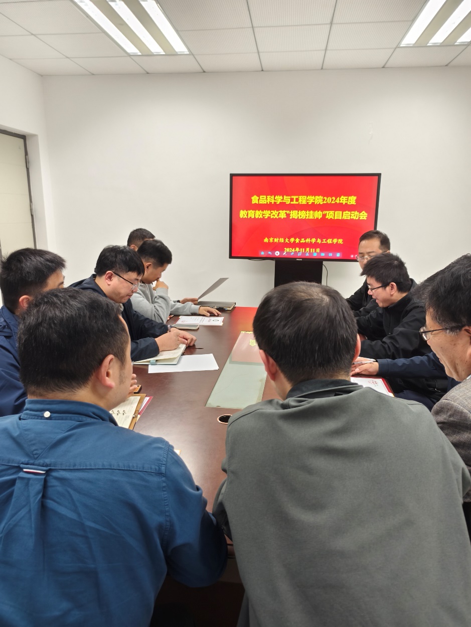2024年11月11日在食工楼220会议室,我院召开了2024年度教育教学改革“揭榜挂帅”项目启动会,会议由沈飞副院长主持,项目负责老师及部分青年教师参会。