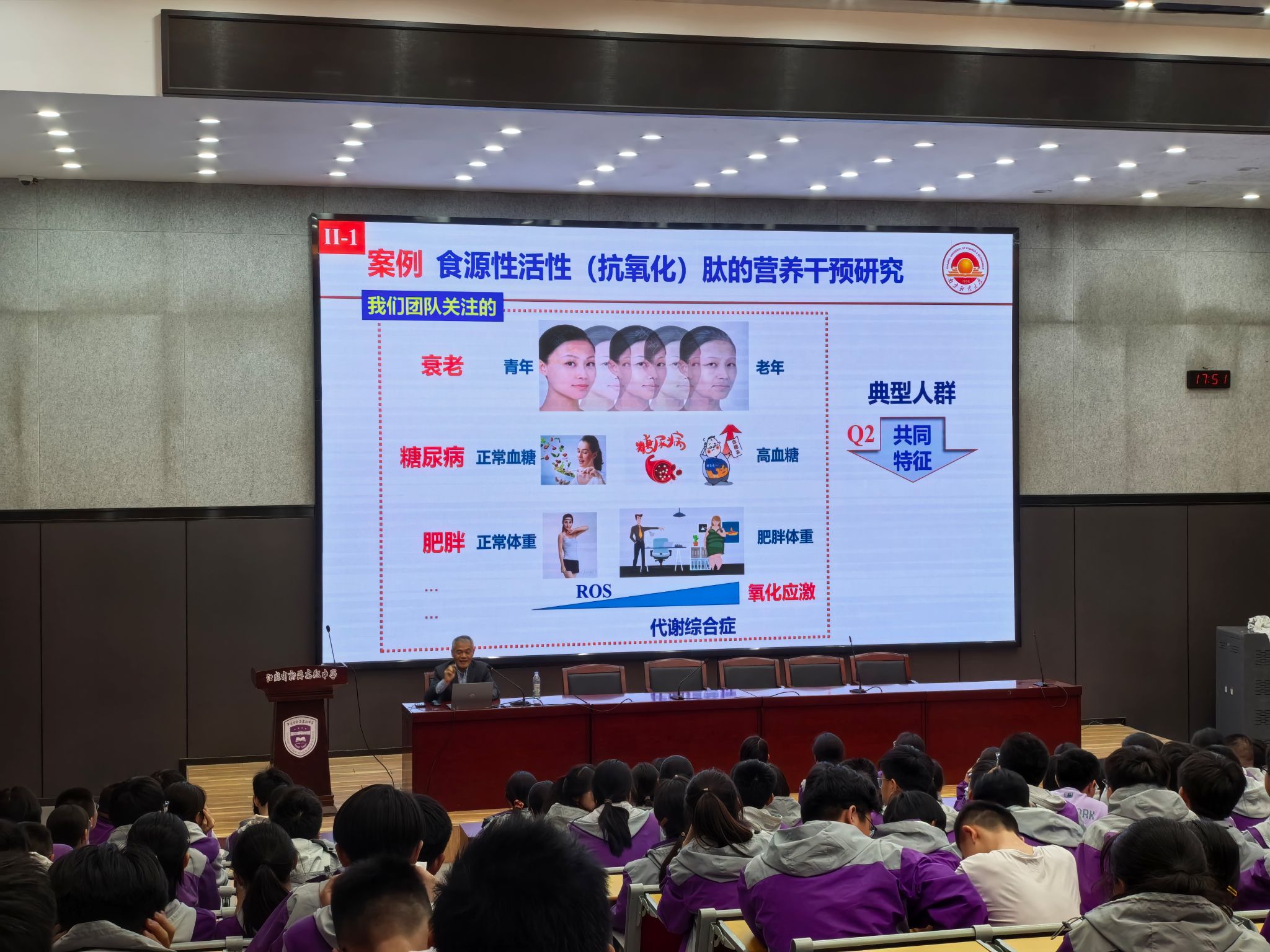 “饮食不是简单的饱腹,而是关乎一生的健康投资,尤其对于即将奔赴高考战场的学子们来说,科学的膳食结构是保持良好学习状态和身体素质的关键。”沈新春教授在讲座中从当下青少年常见的饮食误区切入,结合国内外营养学研究数据,深入剖析膳食结构与慢性疾病、免疫力及学习效能的关联。他通过“膳食宝塔”模型,直观展示优质蛋白、全谷物与新鲜蔬果的摄入比例,并针对高中生学业压力大、作息不规律等特点,提出“三餐定时、零食优选、饮水充足”的实用建议,为高考学子的饮食健康提供了科学指导。