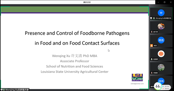 11月2日上午,应我院邀请,美国路易斯安那州立大学许文清副教授为我院师生作了题为《Presence and Control of Foodborne Pathogens in Food and on Food Contact Surfaces》的线上学术报告。伟德国际victor1946部分师生代表参加了本次报告会,报告会由伟德国际victor1946陆颖健教授主持召开。