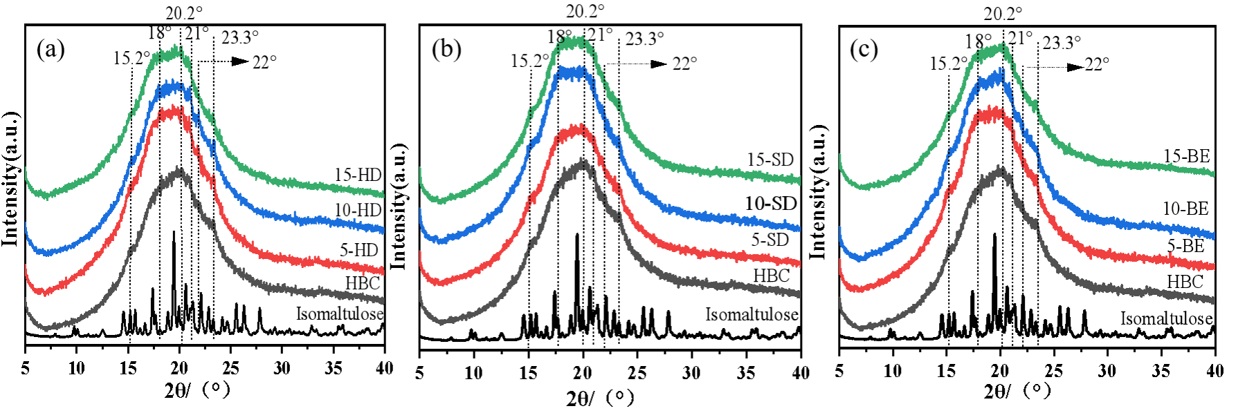 Fig.3 The XRD patterns of different cookies and isomaltulose.