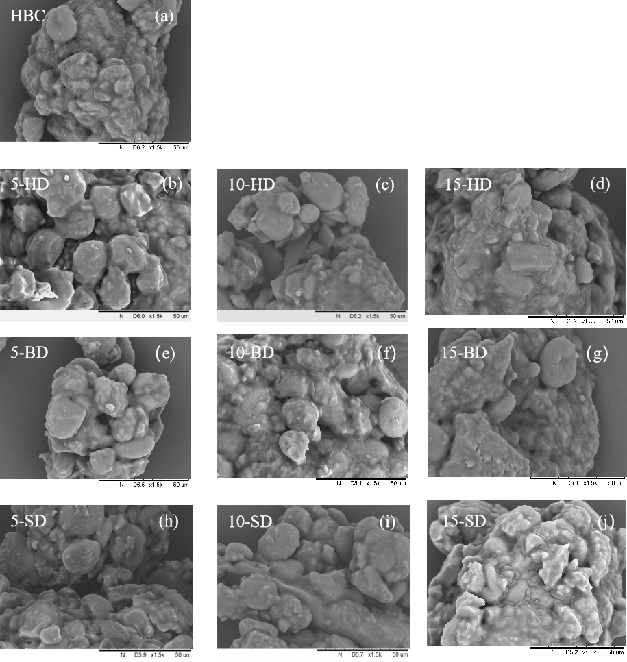 Fig.2 The scanning electron micrographs of different cookies.