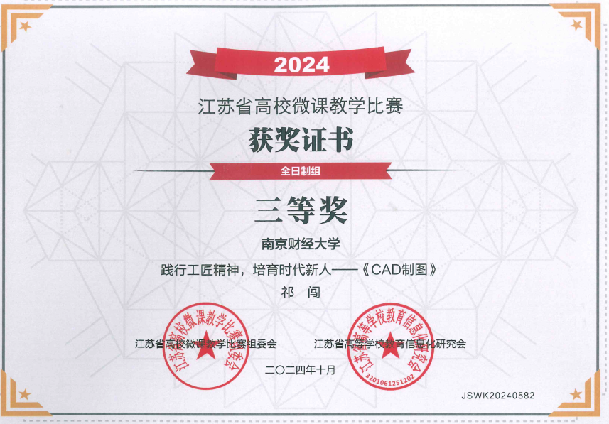近日,江苏省高等教育信息化研究会公布了2024年江苏省高校微课教学比赛获奖名单,我院祁闯老师表现优异,获得全日制组三等奖的好成绩。