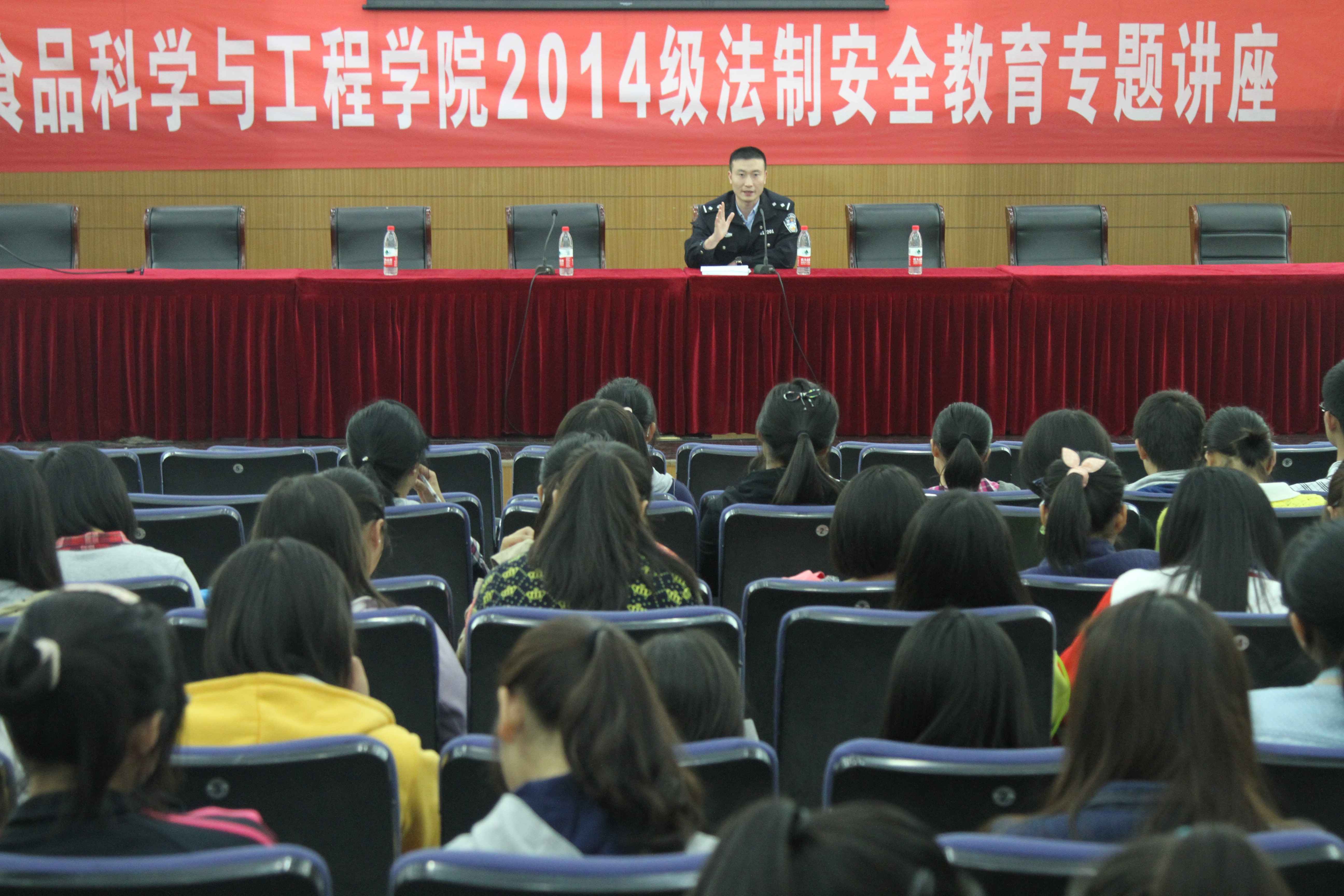 10月23日下午,仙林派出所的曹杰警官来到伟德victor1946仙林校区,在管理学科楼报告厅内为伟德国际victor1946的全体大一新生举办了法制安全教育专题讲座。食工院党委副书记黄辉出席了本次活动。