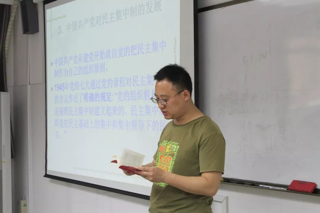 提到民主时,徐老师告诉大家它是正确集中充分听取各方面的意见看法,走群众路线集思广益;集中是为了统一思想,统一决策,统一行动。而列宁是正式提出“民主集中制”这一科学概念并赋予它以比较系统理论形态的第一人。1905年12月,列宁在党的第一次代表会议上第一次明确提出了“民主集中制”这一科学概念。民主集中制的基本内容为“四个服从”原则、民主选取的原则、定期报告的原则、相互沟通的原则、集体领导和个人分工负责相结合的原则、禁止个人崇拜的原则。