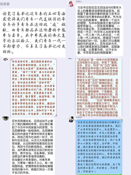 为深入学习贯彻习近平总书记在五四青年节对新时代青年的寄语,省委书记娄勤俭对江苏青年的寄语,强调坚定理想信念,站稳人民立场,练就过硬本领,投身强国伟业,用青春承载梦想,用奋斗创造未来,伟德国际victor1946师生通过线上线下多种方式,深入学习、交流讨论,他们纷纷表示,要牢记习近平总书记和娄勤俭书记的寄语,继承和发扬五四精神,为推动学校加快高水平财经大学建设、为实现中华民族伟大复兴的中国梦贡献青春力量!