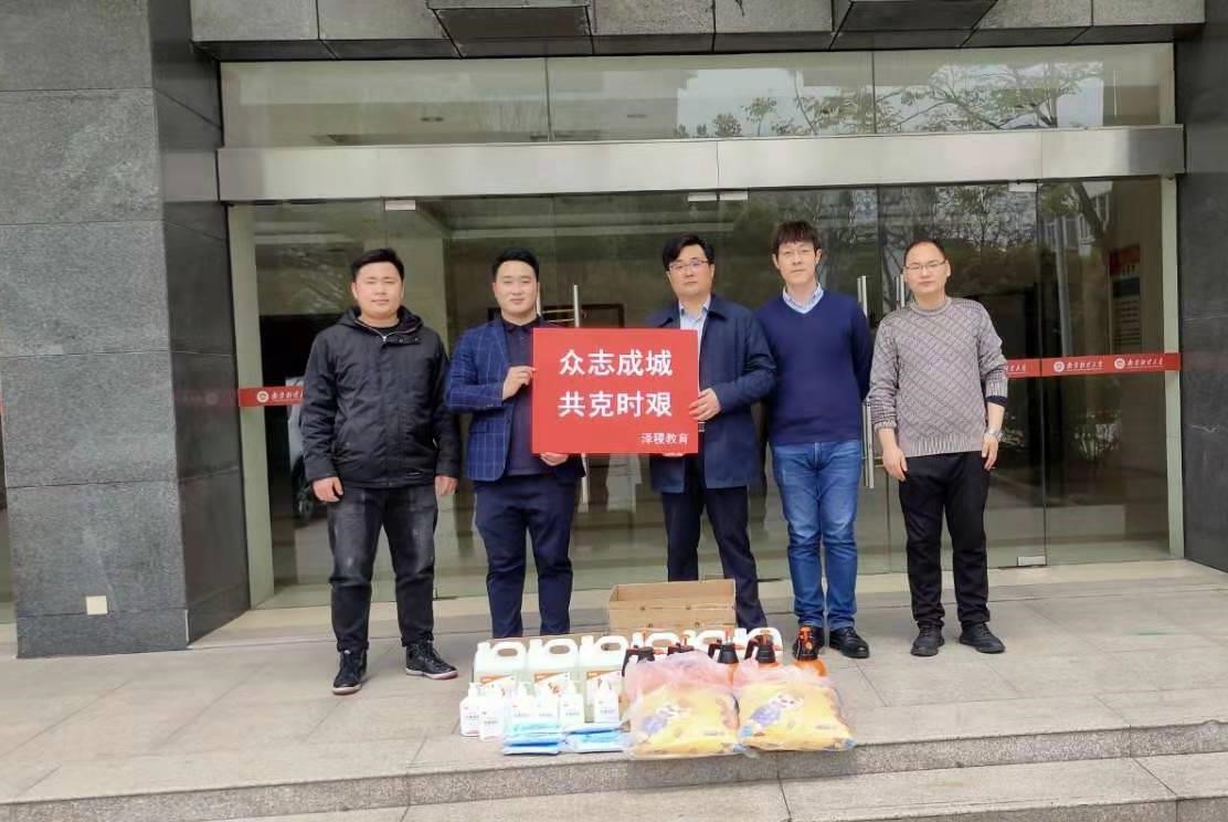 2020年4月10日下午,泽稷教育南京市场部总监、总裁助理宁兆丰先生来到我院,将多方筹集的防疫物资亲自交到了学院工作人员手中。宁兆丰先生代表公司向学院捐赠了高浓度84消毒液、洗手凝胶、消毒湿巾、医用口罩等防疫物资。