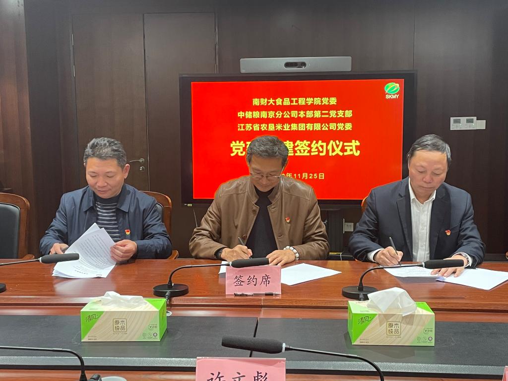 11月25日,我院党委与江苏省农垦米业集团有限公司党委、中储粮南京分公司本部第二党支部党建共建签约仪式在江苏省农垦米业集团有限公司会议室举行。江苏省农垦米业集团有限公司党委书记、董事长宗兆勤,党委委员、财务总监杨怀忠,中储粮南京分公司本部第二党支部书记、购销计划处处长刘华,仓储管理处处长杨基汉,监督检查与审计处副处长顾正芳,我院党委书记许文彪、副院长(主持工作)方勇、副书记周进进、院长助理丁超等参加了签约仪式,仪式由江苏省农垦米业集团有限公司党委委员、副总经理路培浩主持。