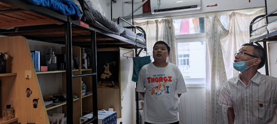 随后,丁书俊处长深入仙林校区11号宿管站18栋403A寝室,调研走访结对联系的研究生并带去了慰问品,杨浥老师陪同调研。在学生宿舍,丁书俊处长亲切询问了同学们目前的学习情况及宿舍生活的实际困难,就同学们专业学习、伟德国际、体育锻炼以及寝室安排等方面开展了面对面交流,并认真听取了同学们的诉求和建议,表示会及时反馈、尽力解决同学们提出的问题。