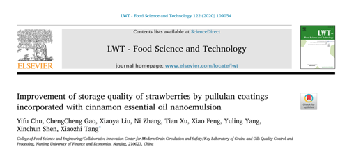 草莓果实营养丰富,拥有“水果皇后”的称号。然而,草莓成熟后表皮极薄,在采摘和储存过程中极易受到机械损伤与细菌霉菌侵染,通常情况下在常温放置3天即失水霉烂严重,失去商业价值。因此,如何维持新鲜草莓的品质,延长草莓的储藏时间一直以来都是国内外研究人员的热点问题。涂膜保鲜法因为具有操作简单易行、良好的气体选择透过性和有效防止微生物侵入等优势,成为近年来果蔬采后保鲜领域的热点研究方向。本研究以天然高分子可降解材料普鲁兰多糖为成膜基材,添加肉桂精油纳米乳液以提升复合膜的抗菌性能。对新鲜草莓涂抹保鲜的应用研究发现, 经过肉桂精油纳米乳液/普鲁兰多糖基复合膜液涂膜后的草莓,其在贮藏期结束时的重量损失、腐败率、硬度、可溶性固形物、可滴定酸和微生物指标均显著好于纯普鲁兰膜液组和对照组的草莓。实验结果表明草莓果实经过肉桂精油纳米乳液/普鲁兰多糖基复合膜液涂膜处理后,可以有效地延长贮存期,延缓衰老,并保持良好的外观品质,可见使用肉桂精油纳米乳液/普鲁兰多糖基复合膜液涂膜是一种极具潜力的保鲜手段。相关研究结果以“Improvement of storage quality of strawberries by pullulan coatings incorporated with cinnamon essential oil nanoemulsion”为题发表在LWT杂志上,我院本科生储艺夫为第一作者,汤晓智教授为通讯作者。本研究得到江苏高校优势学科建设工程项目的资助。