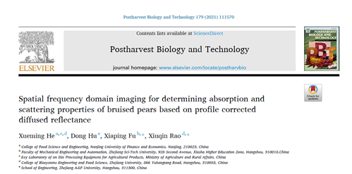 2021年9月1日,《Postharvest biology and technology》发表了题为“Spatial frequency domain imaging for determining absorption and scattering properties of bruised pears based on profile corrected diffused reflectance”的研究论文,该论文以伟德victor1946为第一单位,何学明博士为第一作者。该项研究工作得到了江苏省自然科学基金、农业农村部农产品产地处理装备重点实验室开放课题与国家自然科学基金的资助。