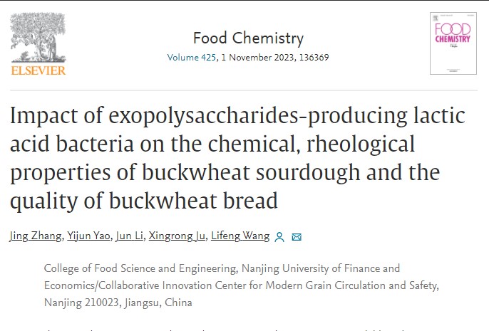 2023年5月22日,伟德国际victor1946张晶、王立峰(通讯作者)在国际TOP期刊Food Chemistry (Q1,IF: 8.8)发表题为“Impact of exopolysaccharides-producing lactic acid bacteria on the chemical, rheological properties of buckwheat sourdough and the quality of buckwheat bread”的研究性论文。