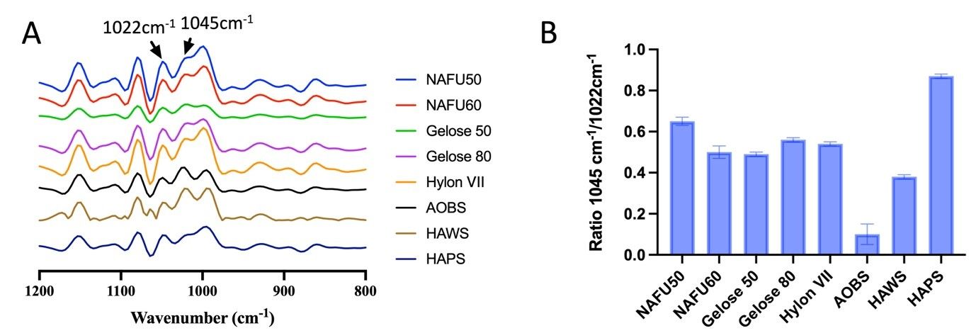 高直链淀粉(high amylose starch, HAS)因其消化缓慢和良好的热稳定性,被认为是极具潜力的抗性淀粉来源。已有研究普遍认为,HAS颗粒表面较低的酶攻击位点密度是其抗酶解的重要原因。然而,不同来源HAS之间在酶解抗性上仍存在显著差异,且直链淀粉含量(AC)与抗性并不呈简单正相关关系,表明其他颗粒结构在调控酶解过程中发挥关键作用,但其作用机制尚不清晰。